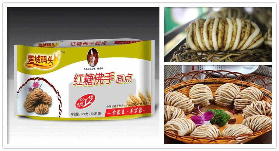 红糖佛手造形的卷包,有点像手,因为味道鲜美,形式特别而受到喜欢。
