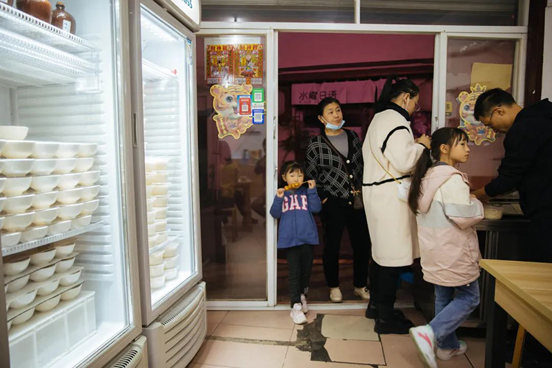 ▲杨嗲甜酒家的食客都是老街坊,他们过来买甜酒